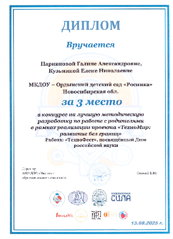 конкурс лучшая методическая разработка по работе с родителями в рамках реализации проекта "ТехноМир- развитие без границ"